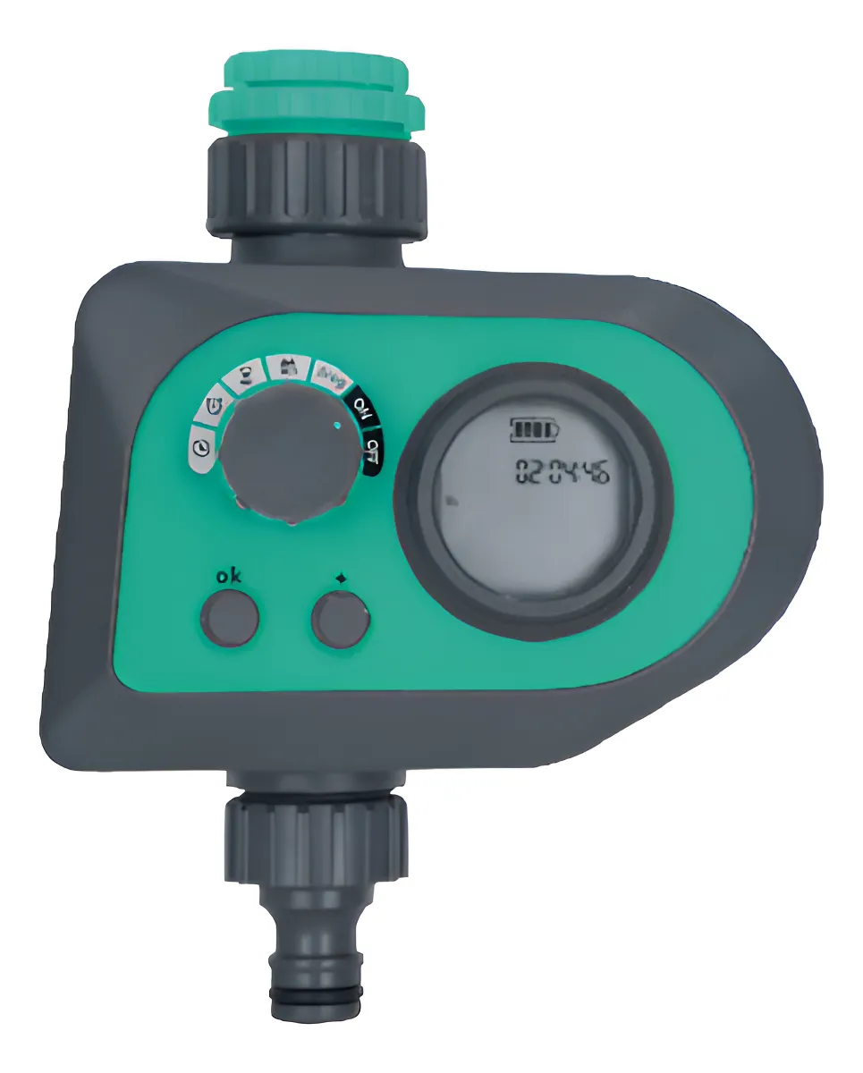 El Temporizador de Riego Digital de DUKE RIEGO es la herramienta esencial para automatizar la gestión del agua en su jardín, huerta o terraza. Este dispositivo se conecta directamente a la canilla y a su sistema de riego (manguera, goteo o aspersión), permitiéndole establecer horarios de riego precisos y personalizados. La pantalla digital y los controles intuitivos facilitan la programación, asegurando que sus plantas reciban la cantidad exacta de agua que necesitan, incluso cuando usted no está en casa.