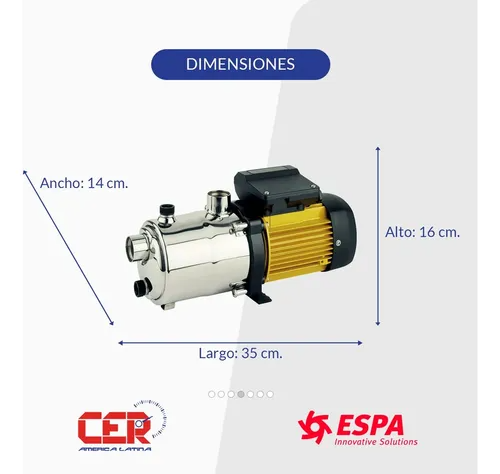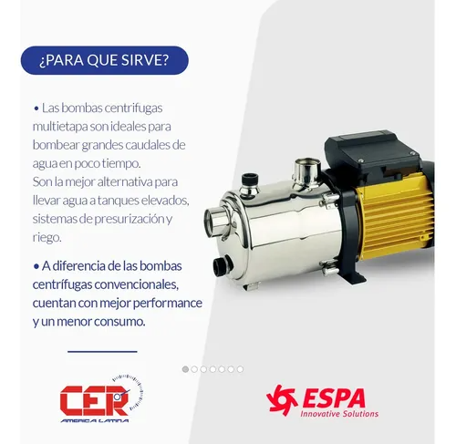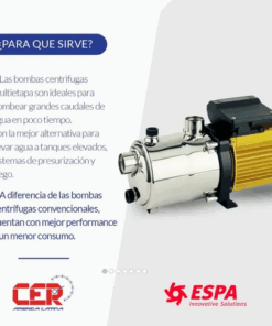 La Bomba Centrífuga Tecno 05-2 de ESPA es una electrobomba multietapa horizontal de 0.15 HP, diseñada para el bombeo de agua limpia en aplicaciones domésticas, industriales y agrícolas. Su construcción robusta y eficiente la convierte en una opción confiable para tareas como la elevación de agua desde cisternas a tanques elevados, sistemas de presurización y riego.
