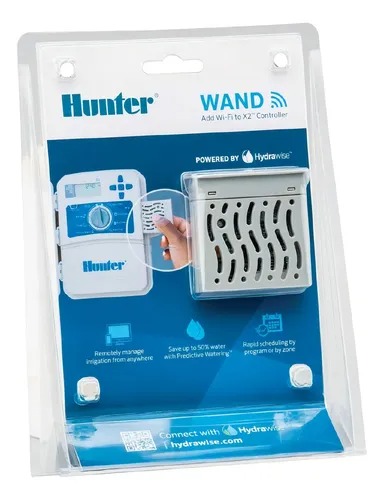 El Módulo WIFI y Bluetooth HUNTER WAND es el accesorio esencial que transforma su controlador de riego Hunter X2 (de cualquier estación) en un sistema de riego inteligente (Smart Controller) con todas las funcionalidades de la plataforma Hydrawise. Este módulo de conexión Plug-and-Play se inserta fácilmente en el puerto de accesorios del X2, desactivando el dial y los botones físicos para transferir todo el control a la nube y a su smartphone.