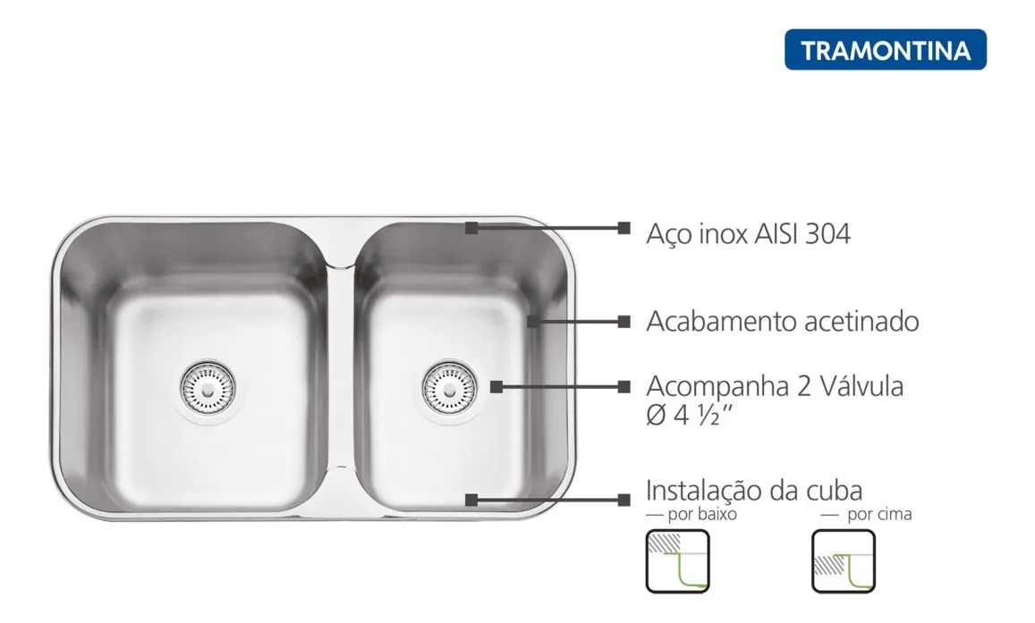 El diseño de empotrar o de sobreponer (según el modelo específico de la Línea ISIS) proporciona un acabado limpio y profesional en la mesada. La Pileta Doble TRAMONTINA ISIS es la inversión clave que mejora el flujo de trabajo, la higiene y la estética de su cocina.