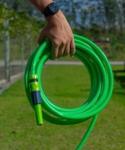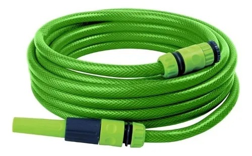 Este kit ya viene listo para usar, con conectores que facilitan su instalación y permiten acoplarla de manera rápida a grifos, picos de riego o sistemas de aspersión. Su color verde clásico le da un aspecto estético y natural, integrándose perfectamente en espacios de jardín.