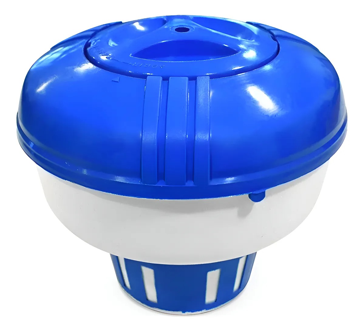 - Protección: Evita el contacto directo de las pastillas de cloro con el liner o el fondo, previniendo decoloración.