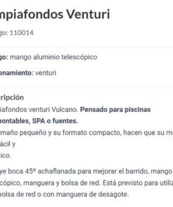 El Limpiafondo Vulcano de aspiración con manija y mango es un accesorio práctico y eficiente para mantener la piscina limpia y libre de suciedad. Diseñado para facilitar la tarea de aspirado, cuenta con una estructura robusta y liviana, lo que permite un manejo cómodo durante el uso.