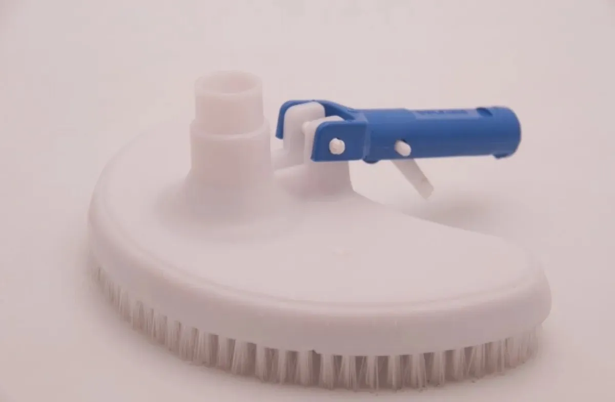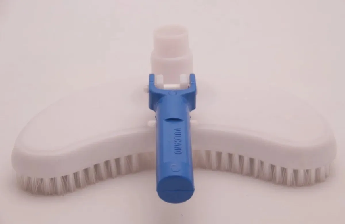 Limpiafondos medialuna pesado Vulcano. Dispositivo para aspirar suciedad y residuos depositados en el fondo de la piscina. Para utilizarlo, se debe conectar la manguera flotante al acople de aspiración y un mango fijo o telescópico.