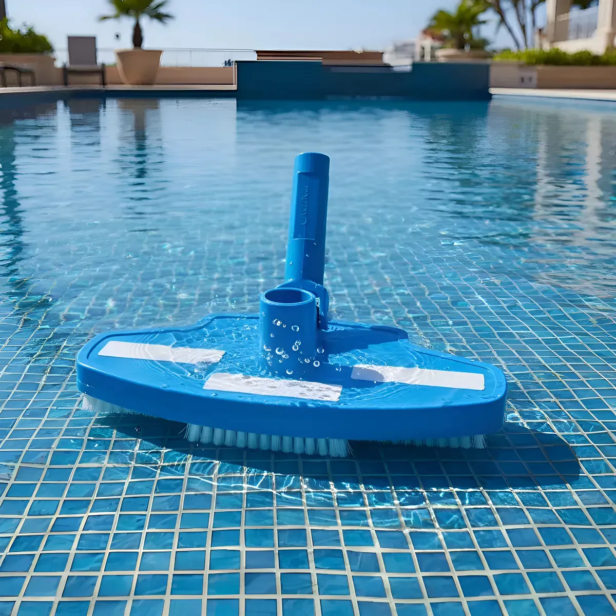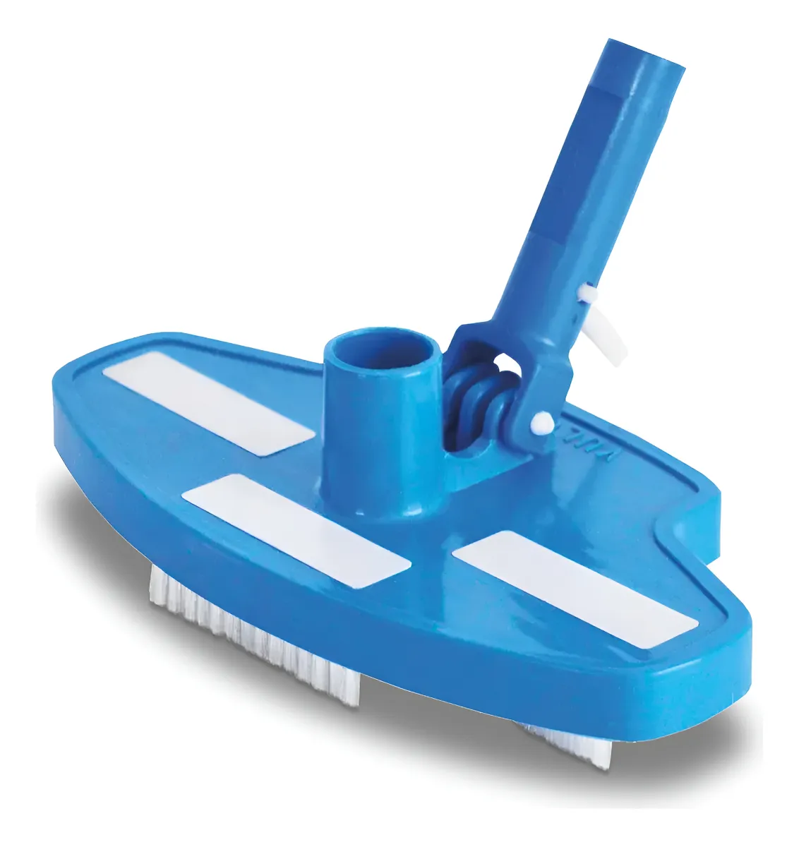 Limpiafondos ovalado Vulcano. Dispositivo para aspirar suciedad y residuos depositados en el fondo de la piscina. Para utilizarlo, se debe conectar la manguera flotante al acople de aspiración y un mango fijo o telescópico.